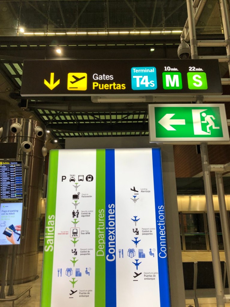 Just as the sign previously predicted, the gate and the plane came in to view after 20 minutes. Per my fitness tracker, that worked out to more than a mile’s worth of walking. Say what you want about Madrid-Barajas’s sprawling Terminal 4, but it’s nice to get some exercise in and stretch your legs before leaving on a long haul flight… provided that you’re not running late! Then it’s just a nuisance.
