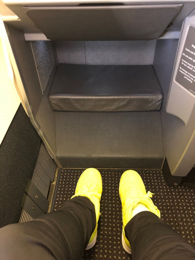 But these illusions are nothing but mirages. If you have broader-than-average shoulders or if you like to sit with your legs crossed or if you stretch during the flight or whatever, you’re bound to feel more-constrained than you would in another airplane’s/airline’s premium cabin. There’s just no physical workaround to limited personal space; everyone’s affected by it in some way but some have it better than others. The bulkheads (unsurprisingly) are among your best choices because, with all other design elements constant, their footwells/ottomans are comparatively huge.