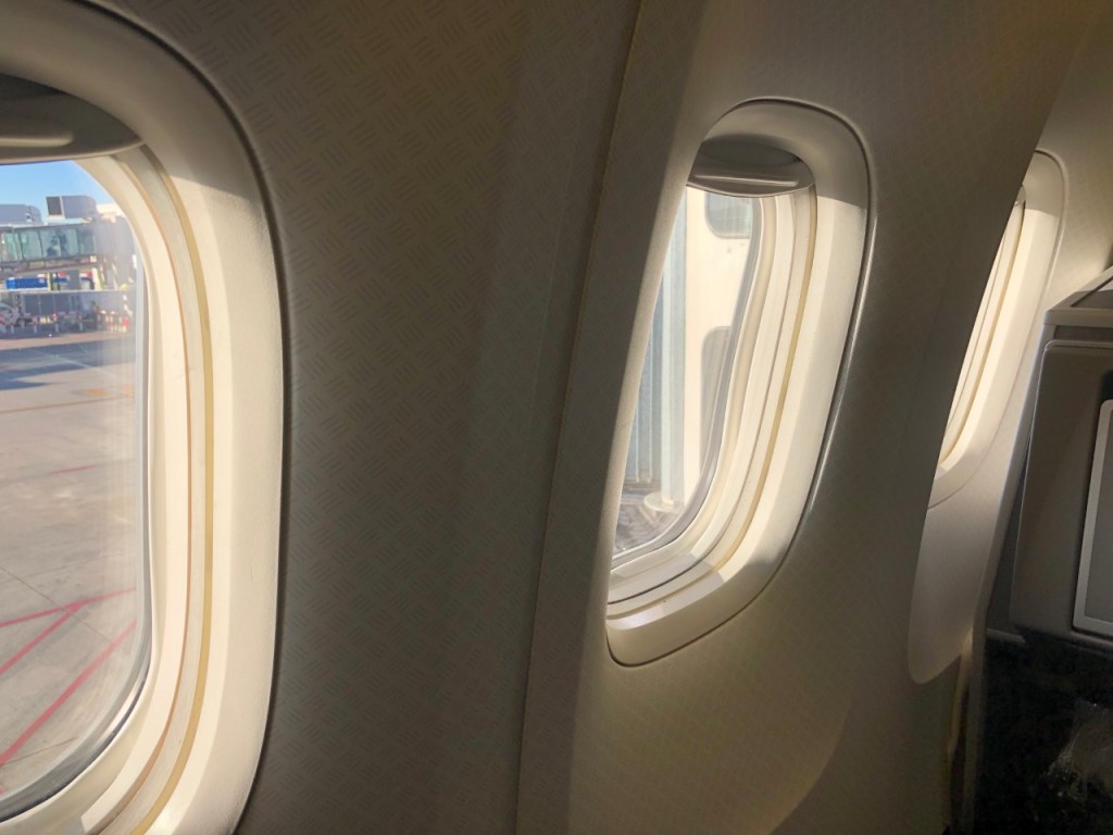 Don’t be deceived: this is, unlike the third window(s), more than just a distraction. Because there’s nothing but walls ahead of them, these seats’ footwells can afford to extend their width by a few inches; those located further back are constrained by the rows in front of them. On paper these extra inches might seem like they could be negligible, but they genuinely and significantly enhance passenger comfort. You’ll notice this immediately when you want to stretch out and/or go to sleep. Seriously, it’s the difference between resting in a natural position and experiencing the sensation of being trapped in a coffin.