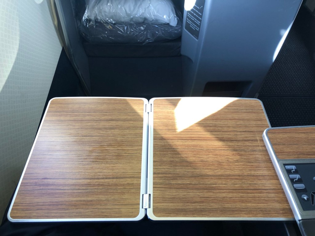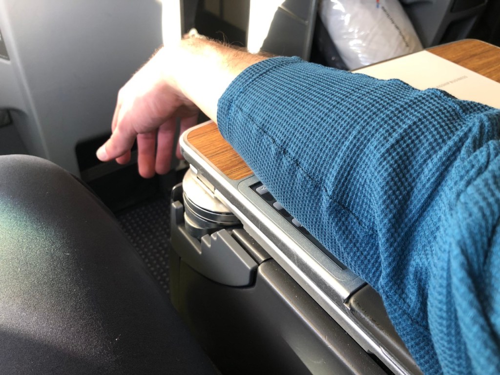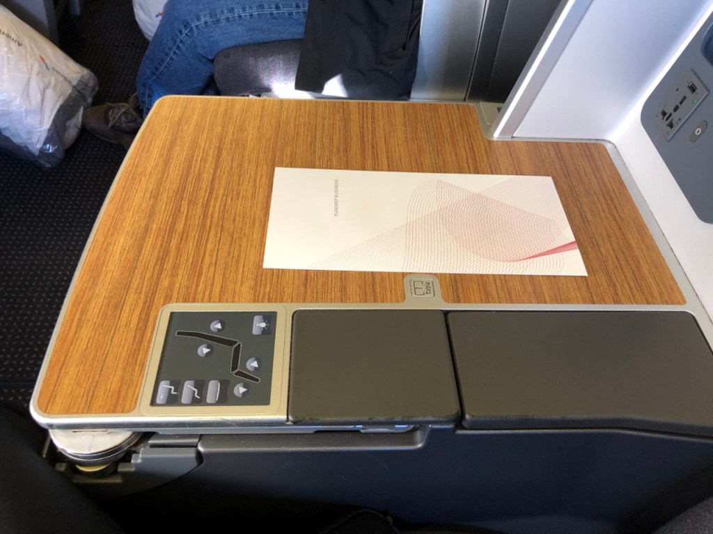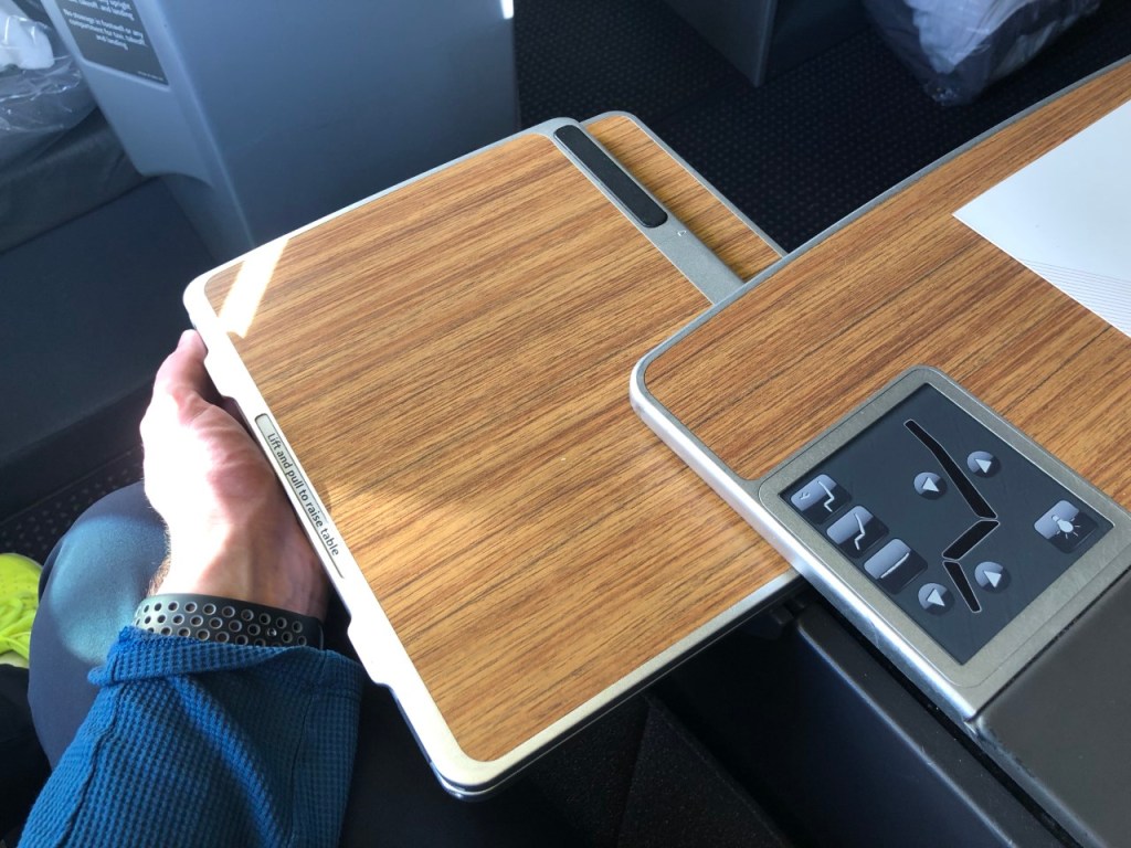 AA, for all of its Boeing 767-related shortcomings, at least proffers a remedy to this unamusing, unimpressive situation to its premium customers. Prepare to be underwhelmed by some certifiable jankiness though. You see, directly across from your chair is what appears to be a tray table… but it’s not!