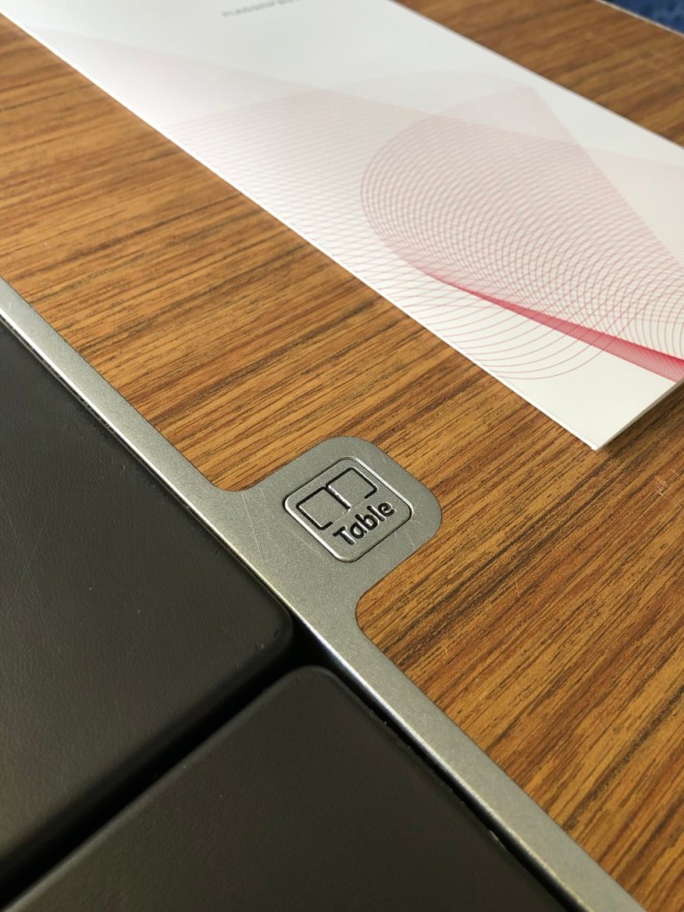 The tray table too is built in to the side console, and getting that to eject and fold out properly requires a college degree. I kid of course, but it’s not user-friendly at all. You gotta firmly push a button to trigger a spring-release…
