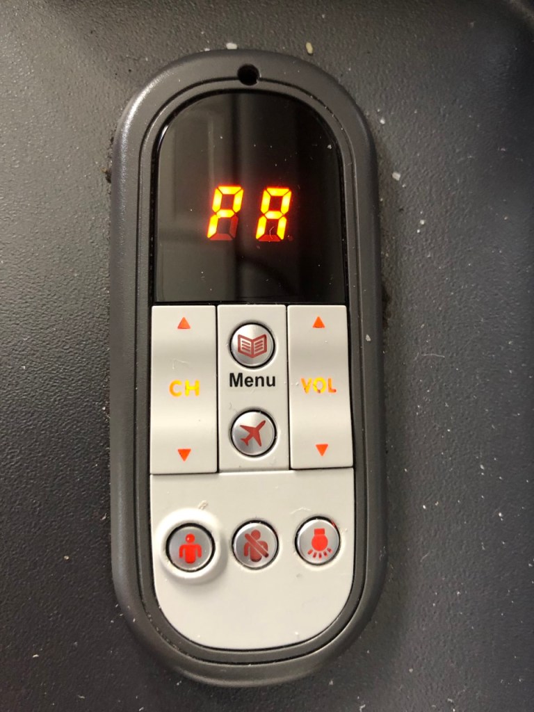 Talk about a relic! It probably won’t surprise you to learn that only two of these buttons worked. How unfortunate that you’re limited to flipping a light switch and calling a flight attendant with this (and not toggling the moving map… or literally anything else).