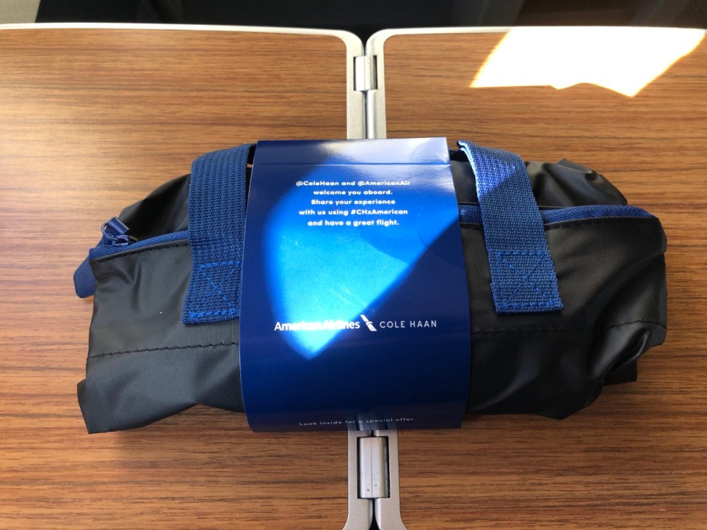In what could best be characterized as “gym bag-chic,” this is a sterile, generic, and uninspired offering that’s manufactured under the Cole Haan label. Like the in flight entertainment, it’s not that this is bad per se — I’ll gladly take this over nothing at all — but the problem is that AA considers something so cheap-feeling appropriate to include with its $5,000 product.