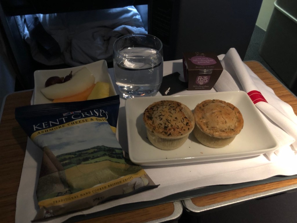 There was plenty of time to savor this treat, as it took the crew nearly 30 minutes to clear the tray table. We had wrapped up and cleaned up completely about two hours after wheels up, and that was, all things considered, pretty fast. Then again, the single-tray deliveries are hallmarks of redeye, eastbound transatlantic legs during which flight attendants hustle in order to maximize passenger rest. Lengthy dinners, in which the cabin lights are on and there’s a lot of movement in the aisles, come at the expense of uninterrupted sleep. During the day though, this is less of a priority and other airlines will draw the main meal out; it’s unclear which format is better. One on hand, quickly eating allows you to focus on other things, but on the other, such speediness can feel unpleasantly hasty. It all comes down to your personal preferences I suppose, but even those can change given the circumstances.