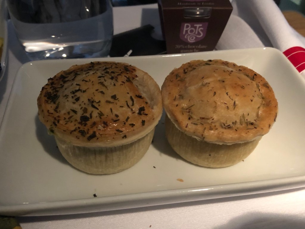Marisol began taking orders in our aisle and, after previously suggesting the tasty fish dish at lunch, I sought her recommendation. Her endorsement couldn’t have been stronger: “The mini pies are SUCH an easy choice!” Let it be so then!