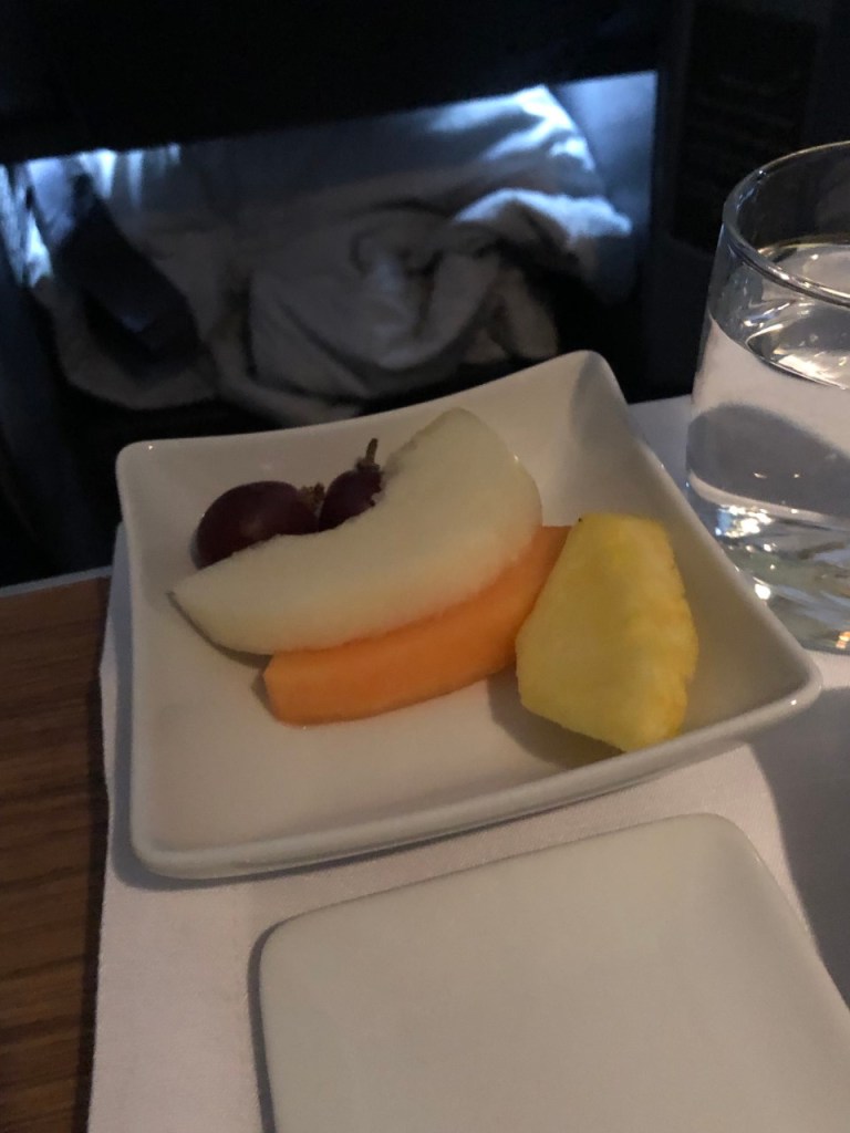 I slept comfortably and solidly for a couple hours, but then gradually woke up to the sound of overly-chatty flight attendants in the galley. Ugh, if there’s a downside to bulkhead seats, it’s that there’s always a risk of being disturbed by commotions from the other side of the forward walls. This slumber-interrupting conversation was particularly animated, with one male crew member gossiping loudly about a sibling who “first was my brother but now is my sister!” I’m all for loving and supportive families, but in this moment, I was grateful to have noise cancelling headphones and a movie to watch.