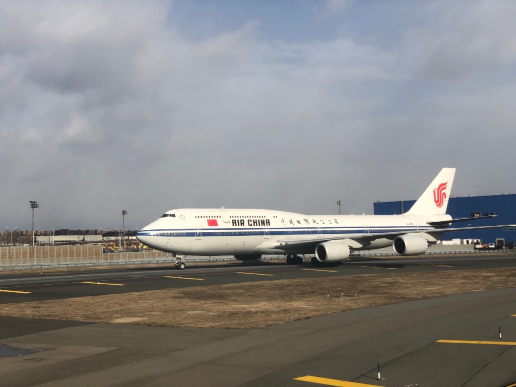 7 hours and 35 minutes after leaving Madrid, we touched down smoothly in New York at 1:20pm local time. We got in 20 minutes ahead of schedule — how convenient when you consider the predeparture delay — but that was fleeting and the only easy part of our arrival. Captain Wayne took to the PA to announce that there was no gate for us to park at, so we would instead taxi around the airport until one became available. The 20 minutes that we had just saved immediately evaporated, but as a tiny, tiny consolation prize, we got to see interesting air traffic as we aimlessly rolled about.