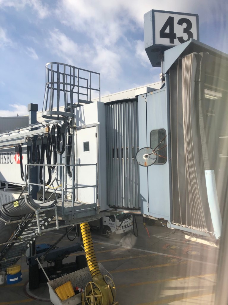 Finally Gate 43 opened up, we pulled in, and then we just sat there. After about five minutes of not-so-patiently waiting, Captain Wayne explained to everyone, with an air of exasperation in his own voice, that there wasn’t any ground staff working the gate. It would take another 20 minutes before a crew could be pulled together to receive us. Audible groaning ensued.