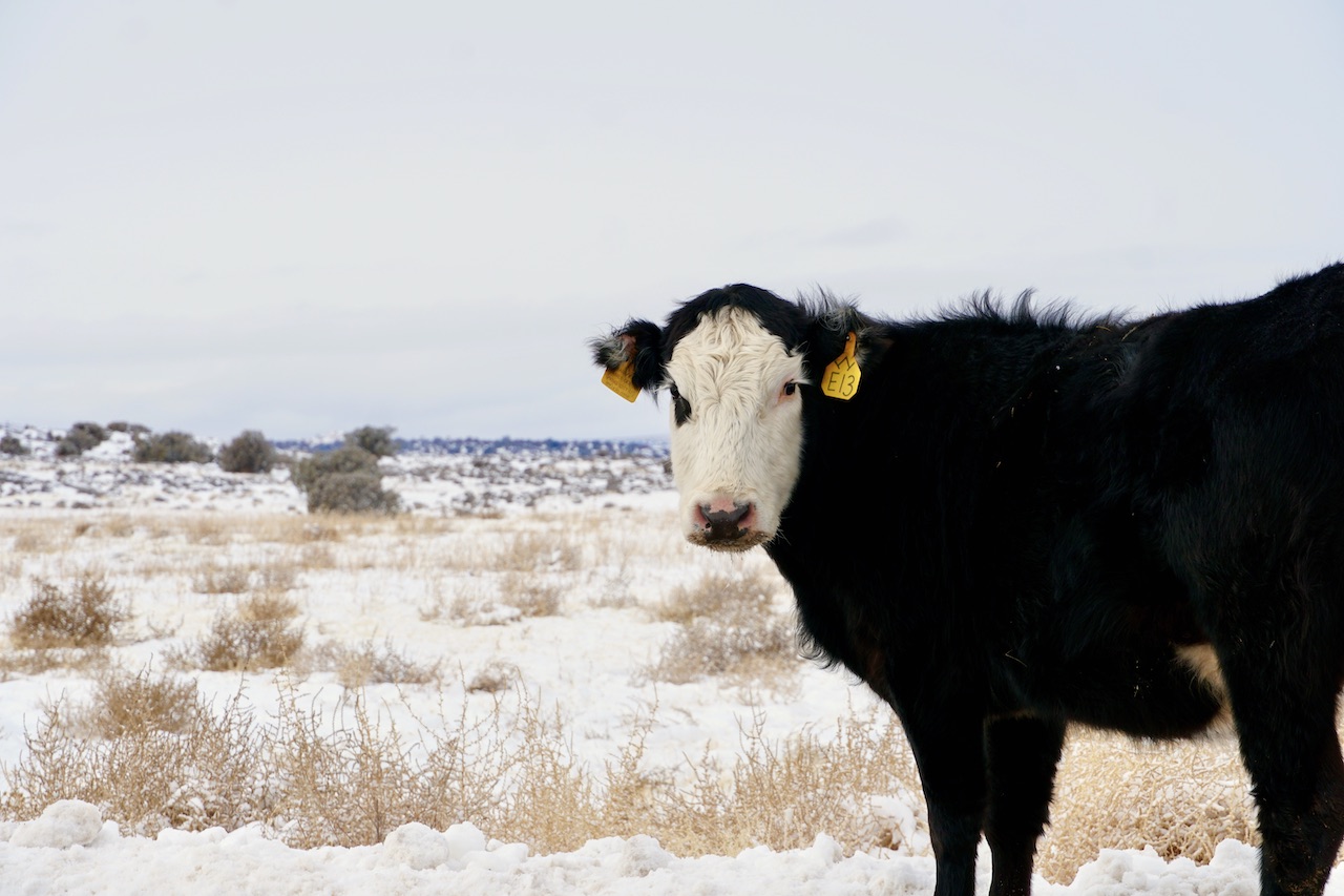 For the first time in a while there’s no subtext nor commentary in this entry; the cow isn’t a metaphor for something more pointed. It’s simply a popular farm animal meandering through a snow-filled open range on the Utah side of the Colorado Plateau. If you’re driving to Canyonlands National Park and/or Deadhorse State Park from Moab, you might come across a whole herd hanging out near the single road (State Route 313) leading from the town to the parks. The cattle are free to move as they see fit, so they might block the way forward and come say hi and pose for pictures while you wait to pass — as this one did for me — but that’s their prerogative. In a time crunch it’s frustrating, but it’s part of an adventure’s charm. And besides, “don’t have a cow, man!“